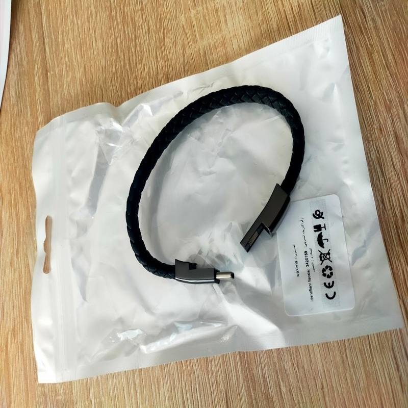 - قم بتوصيل الطرف الآخر من السوار بمصدر طاقة، مثل الكمبيوتر المحمول أو شاحن الحائط.